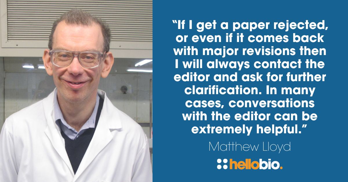 Dr Matthew Lloyd is a Senior Lecturer (Associate Professor) at the University of Bath and he told us about a couple of examples of rejection which after negotiation eventually led to publication: “Generally speaking if I get a paper rejected, or even if it comes back with major revisions then I will always contact the editor and ask for further clarification. It depends on the circumstances, but for example, about 10 years ago I had a paper rejected because the reviewer clearly hadn't read the paper properly. They had suggested doing a number of experiments which we'd already done, so I wrote back to the editor and explained the situation. The editor allowed us to resubmit the paper, but the second reviewer also raised concerns which we disagreed with. At this point we came to the conclusion that perhaps we were sending the paper to the wrong journal, so we used the editor’s feedback and submitted and published with a different journal instead. I also had a review article recently which was well-received by the reviewers but the editor had expressed some concerns. I had an extended conversation with the editor which was very helpful and we eventually ended up rewriting the paper and it was published nearly a year after the original submission. So conversations with the editor were extremely helpful in both cases.”