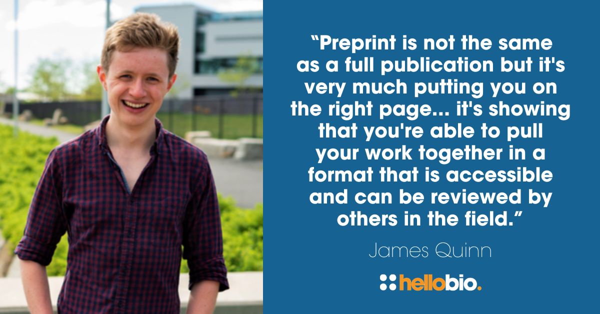 It can however be a great way to get your name out there, as James Quinn told us: “We know that preprint is not the same as a full publication but it's very much putting you on the right page. A lot of funders like to see examples of preprint because it does tick that box of having a publication of sorts. Maybe it's not a full publication but it's showing that you're able to pull your work together in a format that can be accessible and can be reviewed by others in the field.”